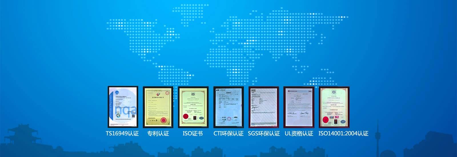 本司的證書有UL認證(認證號為E340866)、ISO9001、ISO14001、TS16949以及美國、加拿大UL/CSA認證等。